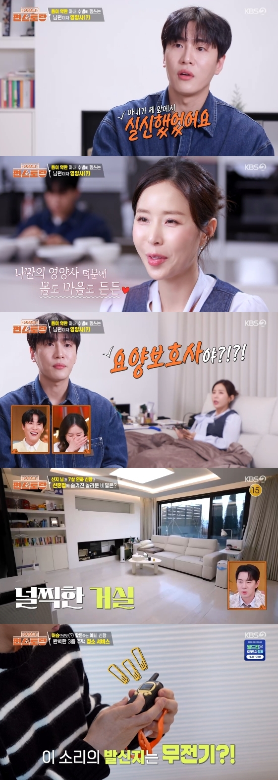 문원은 "신지 씨가 공연도 많고 목소리를 많이 쓰니까 넓은 집에서 크게 부르는 것보다 무전기로 작게 불러도 달려갈 수 있게끔 한다"라고 전했다.