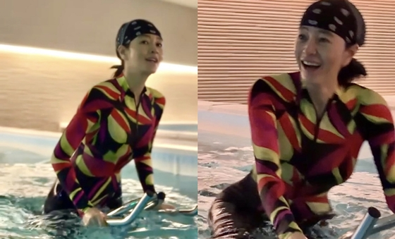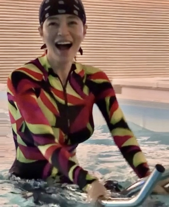 김혜수는 25일 자신의 인스타그램에 실내 수중 운동을 즐기고 있는 여러 장의 사진과 동영상을 게재했다.