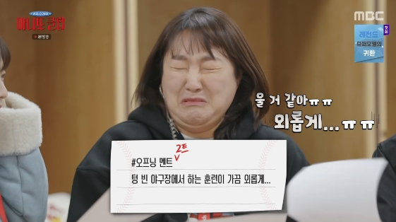 그러나 감수성 넘치는 대본에 "울 것 같다"며 갑자기 눈물을 글썽여 탄식을 자아냈다. 이에 황광희는 "누나가 못 하면 내가 읽게 된다"며 특유의 방정맞은 목소리로 대본을 읽어 웃음을 안겼다.