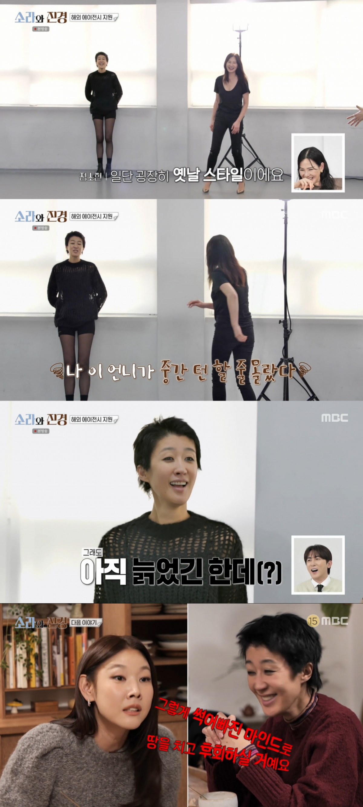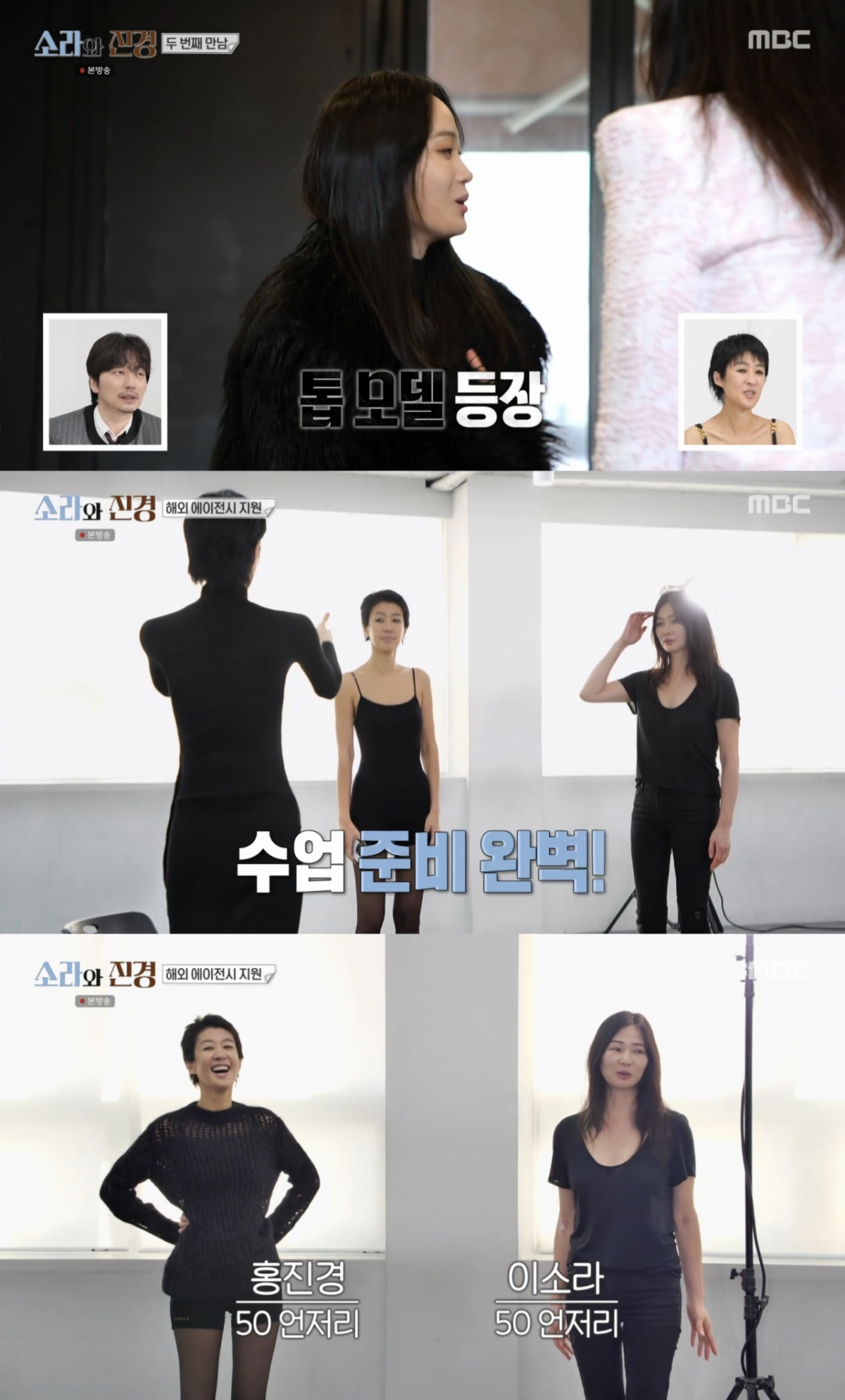 26일 방송된 MBC 예능프로그램 '소라와 진경'에서는 두 사람이 파리 에이전시에 보낼 포트폴리오를 제작하고 워킹 수업을 받는 과정이 그려졌다.