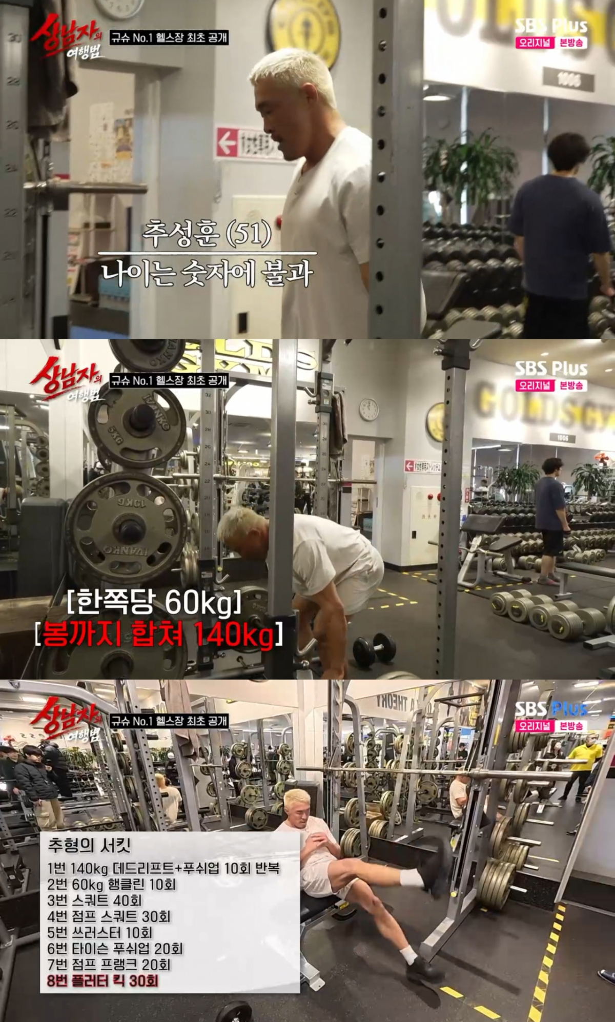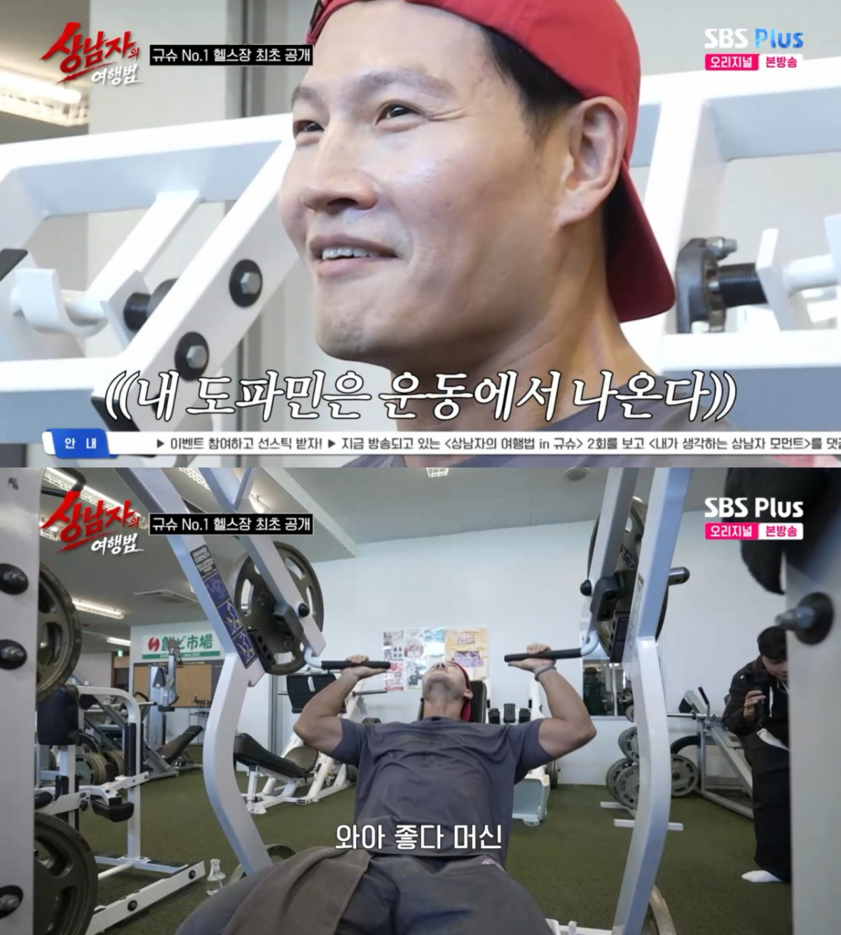 28일 방송된 SBS Plus '상남자의 여행법'에서는 구마모토 여행 2일 차를 맞이한 세 사람의 모습이 그려졌다. 이날 멤버들은 본격적인 여행에 앞서 "운동을 하고 시작하자"는 김종국의 제안에 따라 규슈 최대 규모를 자랑하는 헬스장을 첫 목적지로 택했다.