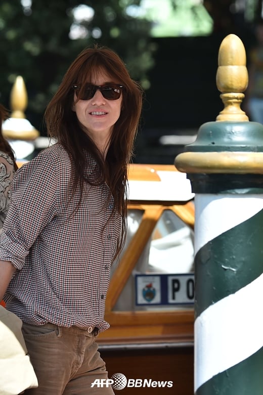 수상 택시를 타고 베니스의 엑셀시어 호텔에 도착하며 포착된 샤를로트 갱스부르는 잔 체크무늬 셔츠에 다갈색 바지, 선글라스를 매치한 모습만으로도 시선을 집중시켰다.
