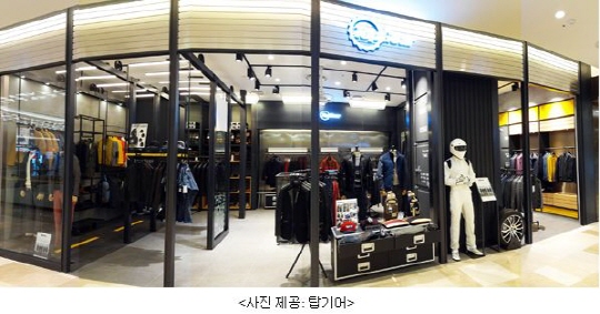 롯데월드몰 탑기어 매장은 시그니처 아이템인 가죽자켓부터 의류 아이템뿐만 아니라 드라이빙 슈즈, 가방, 시계 등 액세서리 라인까지 있어 드라이빙을 즐기는 남성들의 감성을 충족시켜주는 공간이 될 것이다.