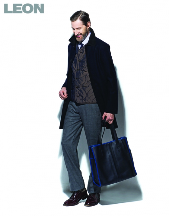 마치 카디건이나 크루넥 니트처럼 깊은 네크라인을 지닌 라이너는 티셔츠, 셔츠, 타이와도 훌륭한 매치를 보여줍니다. 아우터를 끝까지 채우면 잘 보이지 않기 때문에 복장 규율이 엄격한 남자나 클래식 룩을 즐기는 남자들에게 적극 추천하는 타입입니다. 코트 100만원대,CH 캐롤리나 헤레라. 라이너 51만1200원, 티에스에스 by 오쿠스. 화이트 셔츠 10만원대, 팬츠30만원대, 모두 브룩스브라더스. 네이비 타이8만9000원, 프루이. 슈즈34만8000원, 로크. 토트백 206만5000원, 토즈
