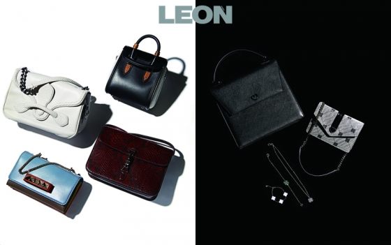 (오른쪽 위부터 시계 방향으로) 가죽과 우드 소재가 조화를 이룬 미니 백 가격 미정, 알렉산더 매퀸 by 분더샵. 뱀 무늬 가죽과 버건디 컬러가 돋보이는 스퀘어 백 가격 미정, 구찌. 체인 장식을 넣어 클러치백으로도 연출할 수 있는 스카이 블루 미니 백 250만원대, 발렌티노 by 무이. 위빙 디테일의 아이보리 백 가격 미정, 보테가 베네타.
