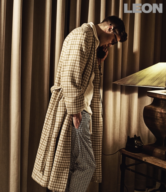 드레싱 가운을 연상케 하는 오버사이즈 니트 코트를 살짝 걸치는 것만으로도 엘리건트한 홈웨어를 연출할 수 있습니다. 테리 소재 피케 셔츠를 함께 매치하면 여유로운 남자의 모습이 완성되죠. 코트 119만8000원, 암위. 테리 소재 피케 셔츠 가격 미정, 체크 팬츠 가격 미정, 모두 더 지지 by 란스미어.