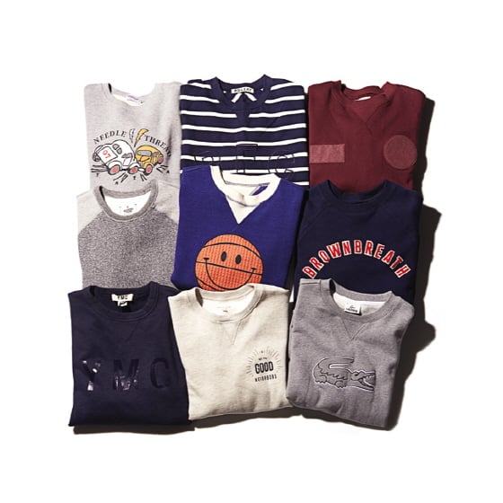 (왼쪽 위부터 차례대로) 유쾌한 일러스트가 그려진 스웨트 셔츠 7만9000원, 커버낫 by 배럴즈. 스트라이프 패턴으로 머리너의 향기를 풍기는 스웨트 셔츠 10만5000원, 로리엣. 벨크로 디테일로 다양한 패치를 붙일 수 있는 스웨트 셔츠 11만8000원, 노앙. 컬러를 다르게 해 래글런 디테일을 강조한 스웨트 셔츠 23만5000원, 레이닝 챔프 by 플랫폼. 청명한 색과 독특한 소재감의 일러스트가 돋보이는 스웨트 셔츠 11만8000원, 위드 MNW. 브랜드의 로고를 간결하게 넣어 깔끔한 맛을 더한 스웨트 셔츠 6만9000원, 브라운브레스. 테이핑 처리한 브랜드 로고가 색다른 무드를 풍기는 스웨트 셔츠 16만8000원, YMC by 플랫폼. 차분한 느낌의 오트밀 컬러 스웨트 셔츠 6만8000원, 비슬로우. 옷과 같은 톤의 브랜드 마크를 새겨 넣어 심플함을 강조한 스웨트 셔츠 14만8000원, 라코스테.