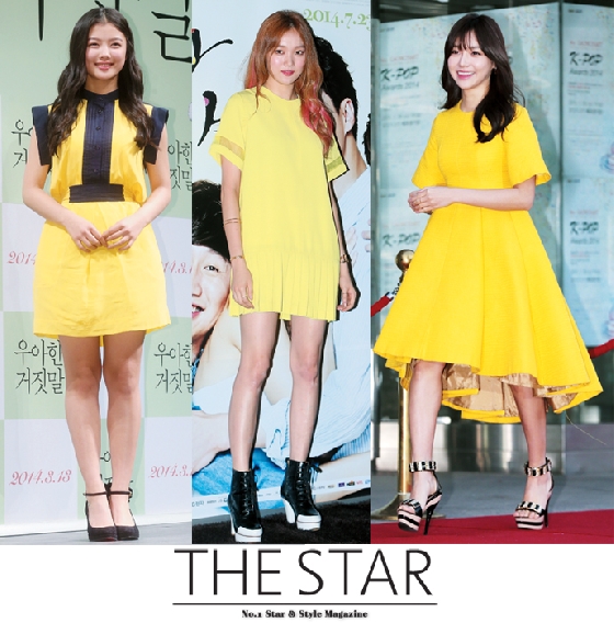 따뜻한 햇살처럼 보기만 해도 눈부신 옐로 컬러는 봄이 왔음을 한눈에 알 수 있다. 선배들에게 꼬까옷을 입은 막냇 동생처럼 ‘보호 본능’을 자극하고, 귀엽고 낙천적인 분위기 덕에 새내기들만이 누릴 수 있는 특권이다. 이성경과 천이슬처럼 실루엣이 넉넉하고 밑단에 플레어 디테일이 들어간 원피스는 편안하면서 톡톡 튀는 인상을 준다. 이때, 자칫 유치해 보이지 않기 위해 액세서리는 간결하면서도 볼드한 것을 선택한다. 특히 슈즈는 워커 스타일나 와일드한 디자인을 매치하면 아기자기한 느낌이 중화된다.