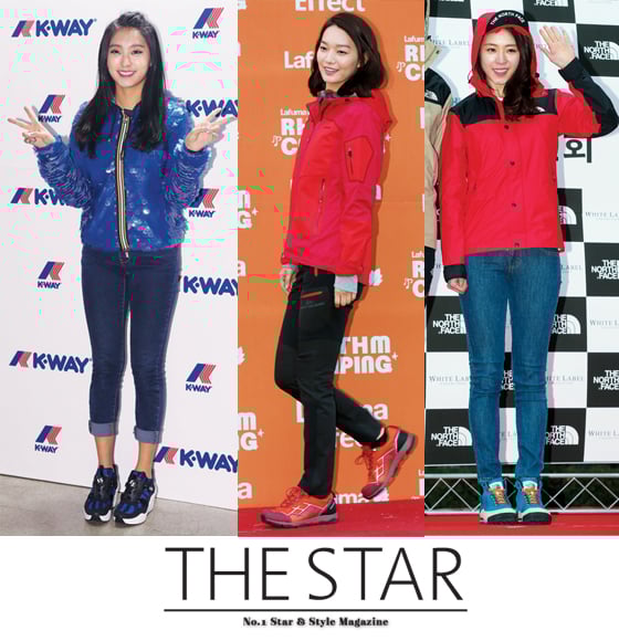 3 가벼운 윈드브레이커와 데님 팬츠에 시원한 블루 컬러 트레킹화를 매치해 캐주얼한 캠핑룩을 완성한 이연희