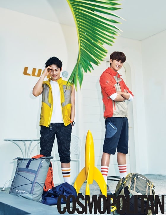 패션 매거진 코스모폴리탄과 아웃도어 브랜드 컬럼비아와 함께한 이번 화보에서 두 사람은 각각 알록달록한 윈드브레이커를 입고 피케셔츠에 쇼트팬츠를 매치하는 등 가볍고 경쾌한 스포츠 룩을 연출했다.