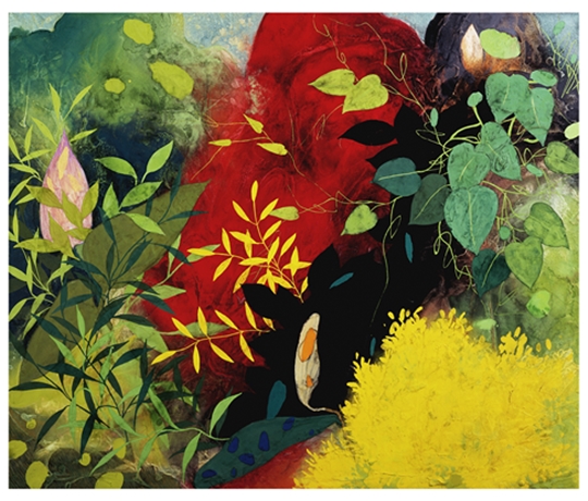 그리고 문외한을 앞에 두고 그는 당시에 관해 이렇게 운을 뗀다. “당시 한국화에서 금기시 되던 색이 노랑과 빨강였어요. 문인화에서 꽃 그릴 때 말고는 쓸 일이 없었죠. 그러다보니 물감이 많이 남지 않겠어요?” 요는 그렇게 남은 물감들이 아까워 채묵화를 그리게 됐다는 설명이다. 그렇게 참 단순하고 알기 쉽게 시작된 작업이지만 그 작업의 성과는 간단치 않았던 모양이다. 평론가 오광수는 “먹이란 평면을 만들고 그 위에 채색의 이미지를 구사하는 형식“으로 ”바탕의 수묵은 오랜 시간의 축적 같은 의미태로서 나타나며 채색으로 떠오르는 이미지들은 축적된 시간의 저 깊은 바닥에서 서서히 밖으로 솟아오르는 특징을 지니고 있다“고 평했다.