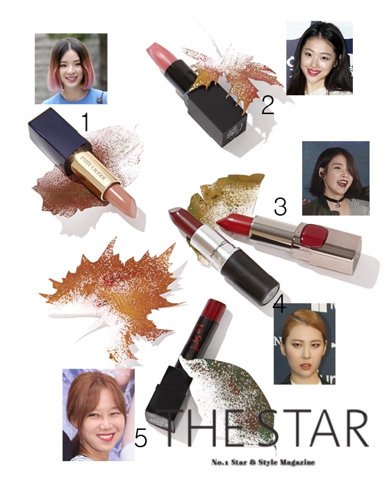 울긋불긋, 단풍잎처럼 매혹적인 가을 립스틱 스타를 한자리에 모았다.