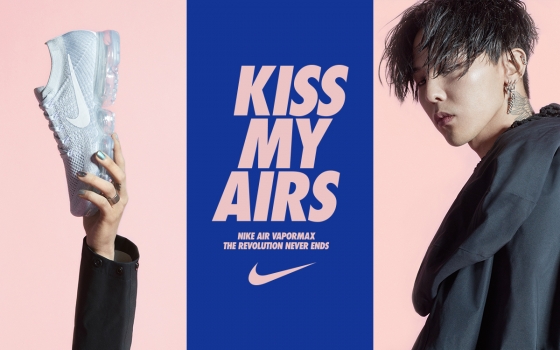 이번 나이키 ‘KISS MY AIRS’ 캠페인에는 글로벌 아이콘 중 한 명으로 지드래곤이 선정되어, 자신만의 에너지와 특별한 분위기로 나이키 베이퍼맥스가 그려내고자 하는 혁신을 표현해 냈다.