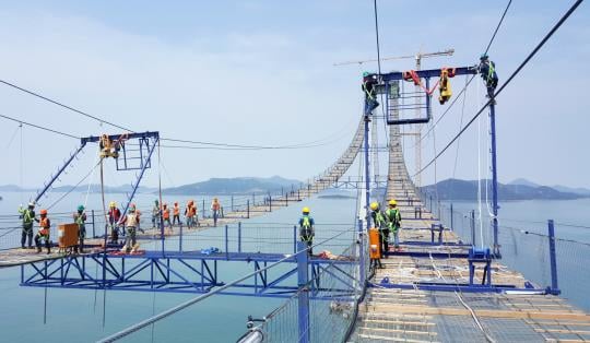 현수교는 주탑과 주탑을 케이블로 연결하고 케이블에서 수직으로 늘어뜨린 강선에 상판을 매다는 방식의 교량이다. 해상 특수교량 분야 가운데 시공 및 설계 기술 난이도가 가장 높은 분야다. 특히 케이블 가설 작업은 현수교 시공 과정 중에서 가장 핵심적인 공정으로 고도의 기술력을 필요로 한다.