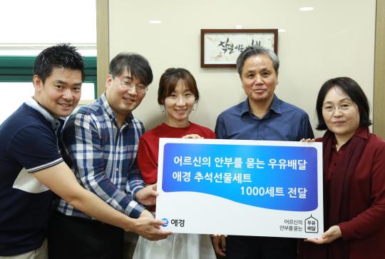 애경은 25일 오후 사단법인 ‘어르신의안부를묻는우유배달’과 함께 독거 어르신을 위한 추석 선물세트를 전달했다.