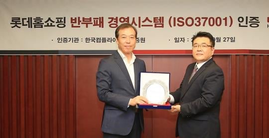 롯데홈쇼핑이 홈쇼핑 업계 최초로 ‘반부패경영시스템(ISO37001)’ 인증을 받고 수여식을 진행했다.