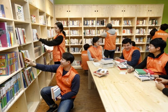 한화건설과 한화호텔앤드리조트가 경상남도 거제시종합사회복지관에서 ‘꿈에그린 도서관’을 조성했다.