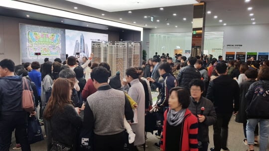 익산 부송 꿈에그린에 대한 지역 주택 수요자들의 청약 열기는 높았다. 견본주택 앞에는 이른 아침부터 입장을 기다리는 방문객들로 긴 줄이 형성돼 있었으며, 내부에 마련된 유닛에도 긴 줄이 형성돼 안내원들의 통제에 따라 차분히 입장하는 모습이 연출됐다.
