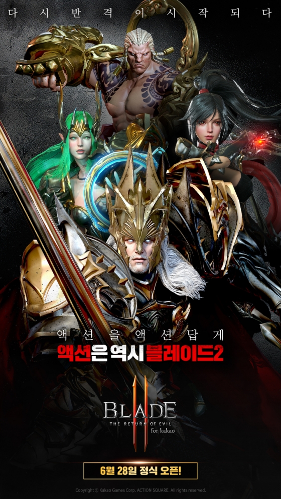 글로벌 멀티플랫폼 게임 기업 카카오게임즈(각자대표 남궁훈, 조계현)는 28일(목), 액션스퀘어(대표 박상우)에서 개발한 모바일 액션 RPG 대작 ‘블레이드2 for kakao’를 정식 출시했다.