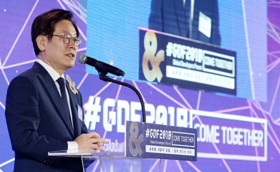 이재명 지사는 19일 판교 경기창조경제혁신센터 국제회의장에서 개막한 ‘글로벌 개발자 포럼(Global Developers Forum 2018, 이하 GDF 2018’)에서 “피할 수 없는 상황에서는 적응이 가장 빠르게 행복하게 사는 길이라는 것이 우리의 역사적 경험이다. 4차산업혁명은 우리의 삶속에 들어와 있고 거역할 수 없는 큰 흐름이 될 것”이라며 “그렇다면 4차산업혁명을 능동적으로 받아들여 경기도를 미래산업의 중심지로 만들어가는 것이 필요하다”라고 강조했다.
