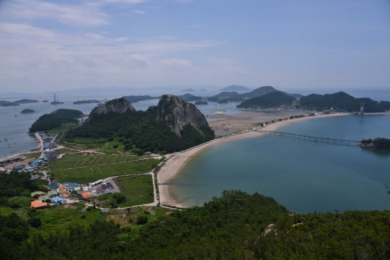 고군산군도중 가장 큰 신시도를 관통해 고군산대교를 달려 무녀도를 지나면 선유대교를 만난다. 도보전용 장자교를 통해 바다를 걸어 건너보는 재미도 있고 선유3구에 차를 세우고 20여분 남짓 걸어올라 만나는 대봉정상에서 바라보는 고군산군도의 풍경은 탄성을 부른다. ‘섬과/섬 사이/새가 날아갔다./보라색의 햇살로 묶은/편지 한 통을 물고/섬이 섬에게/편지를 썼나 보다’는 곽재구 시인의 시(선유도)처럼 정겹고 아슴한 울림을 준다.