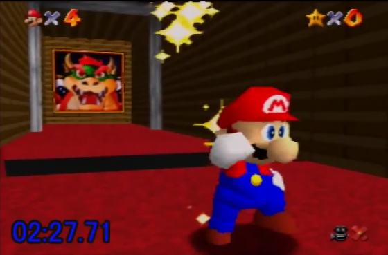오래전에 한 유저가 '슈퍼마리오 64'를 16개 별만을 가지고서 클리어 한 사례도 있었습니다. 보통 최종 보스인 '쿠퍼'에게 도전하려면 적어도 70~120개의 별을 모아야 하는데, 이 유저는 글리치를 이용해 막힌 벽도 뚫고 가며 빠르게 진행한 것이죠. 나중에는 단 한 개의 별도 먹지 않고 클리어 한 유저까지 등장했습니다.