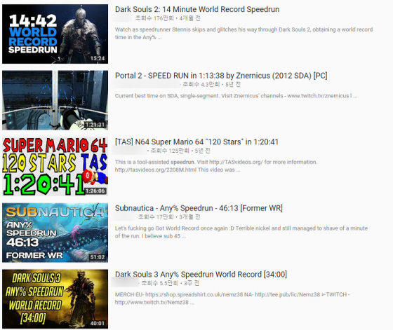 예전엔 온라인 커뮤니티에서 공유를 했지만, 지금은 스트리밍 플랫폼이 활성화가 되어 유튜브나 트위치 등을 통해 스피드런 영상을 쉽게 찾아볼 수 있습니다. 아예 스피드런을 전문으로 하는 채널들도 등장하면서 이제는 하나의 방송 콘텐츠로 자리 잡았죠.