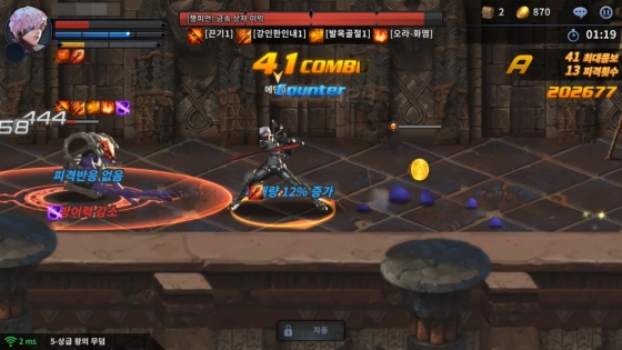장호준:다른 모바일 벨트스크롤 액션 게임은 초반에 기본적인 액션을 즐기다가 스킬이 점점 늘어가고 다양한 액션을 취할 수 있게 되는 형태입니다. 반면, 트리플S는 유저가 원한다면 초반에 사용하는 스킬에만 스킬 포인트를 투자해서 간단한 조작으로도 충분히 전투를 풀어나갈 수 있도록 했어요. 물론, 스킬 조합을 통한 화려한 콤보를 원한다면 스킬 포인트를 여러 스킬에 투자하면 되죠.