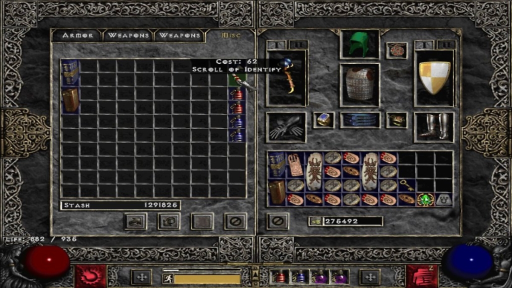 역시 가장 대중적인 로그라이크인 <디아블로>를 예를 들면 처음에 무기를 주우면? 상태로 감정을 해야 합니다. 감정하지 않은 상태에서는 그냥 보통 검과 다를 바가 없으며 특수 효과도 발휘하지 못합니다. 최근의 디아블로 3는 확인해야만 사용 가능하지만요.