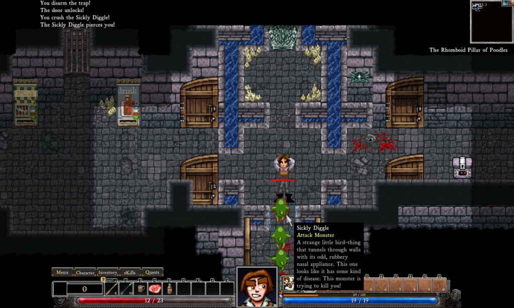 이외에도 실시간 턴제도 로그라이크의 특징입니다. 일반적으로 턴제 게임은 주인공이 움직인 후에 번갈아가며 움직이지만, 로그라이크는 주인공의 행동이 이뤄진 후 즉각적으로 적의 턴이 오게 됩니다. 그렇기 때문에 플레이어를 연속으로 움직이면 마치 실시간 게임을 하는 것처럼 즐길 수 있습니다.