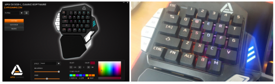 왼편에 붙어있는 G1~ G4 키는 매크로 전용 버튼으로 에이픽스 공식 홈페이지에서 제공하는 전용 소프트웨어를 통해 설정할 수 있습니다. 매크로는 사용한다면 편리할수는 있으나 특정 게임에선 편법으로 적용될 수 있으니 주의해야겠습니다.