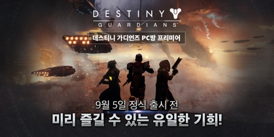 전 세계적으로 호평받은 다중접속 온라인 1인칭 슈팅 게임(MMOFPS) 데스티니 가디언즈(Destiny Guardians)를 정식 출시에 한 발 앞서 만나볼 수 있는 '데스티니 가디언즈 PC방 프리미어'가 한국에서 시작됐다. PC방에서 데스티니 가디언즈를 즐기는 플레이어들을 위한 특별한 혜택과 이벤트도 아울러 마련된다.
