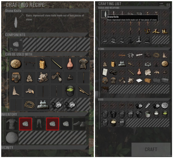 '뭔가를 주워서' 쓸 생각보다는 '뭔가를 만들어서' 사용하는 편이 더 빠르다. 우선 주변의 돌이나 나무를 줍고, 제작부터 하는 게 좋다. 어차피 게임의 호흡은 길고, 다가오는 자기장도 없다. 천천히 생각하며 파밍을 해나가면 된다.