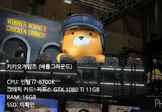 ‘배틀그라운드’를 위해 카카오게임즈는 최고의 시연용 PC를 준비했습니다. CPU는 인텔 i7-8700K, 그래픽 카드는 GTX 1080 Ti, 램은 16GB를 사용했죠. CPU는 8세대 중에 가장 좋은 성능을, 그래픽 카드 역시 2080을 빼면 가장 좋은 제품입니다. 이런 PC로 ‘배틀그라운드’를 한다면 절대 장비 탓을 할 수는 없겠네요.