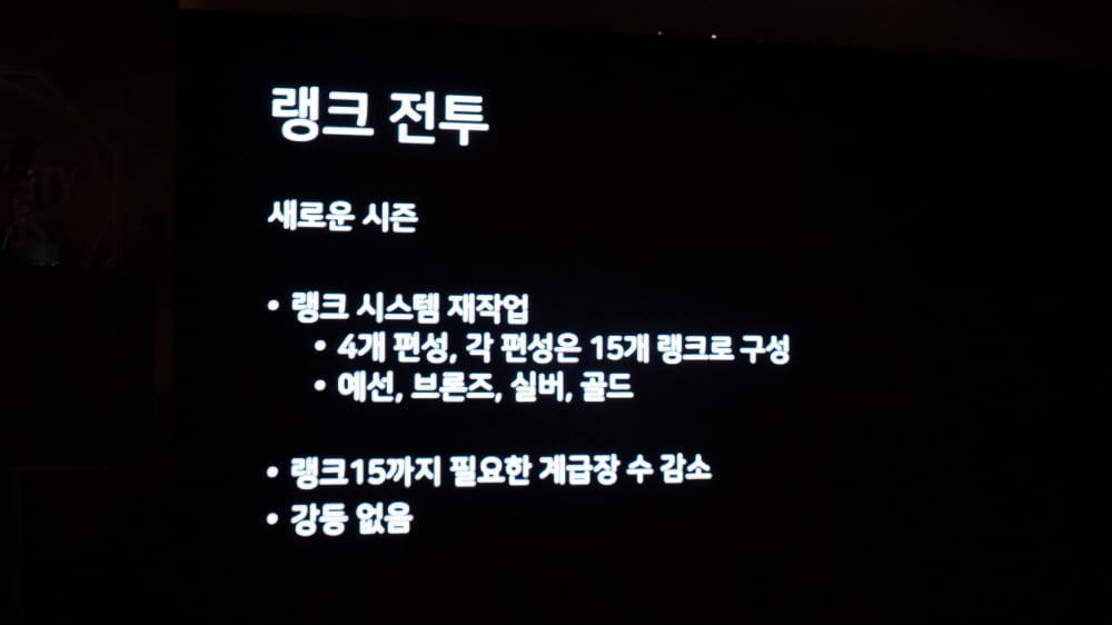 - 보통 랭크 매치에서 강등은 긴장감을 높여주는 재미 요소이기도 한데, 랭크 전투에서 강등을 없앤 특별한 이유가 있는가?