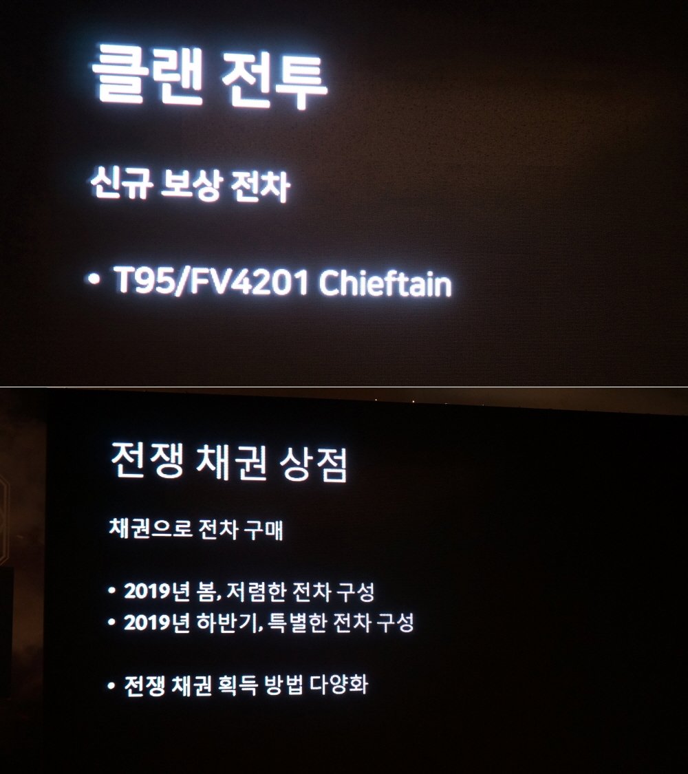클랜 전투 보상 중 하나인 '전쟁 채권'의 획득 방법과 사용처도 늘어난다. 기존의 스킬 획득, 추가 장비 장착 외에 전차 구입에도 활용할 수 있게 된다. 2019년 봄에는 저렴한 전차를, 2019년 하반기에는 전쟁 채권으로만 구입할 수 있는 전차를 제공해 전쟁 채권으로 더 재미있고 다양한 경험을 할 수 있도록 한다는 계획이다.