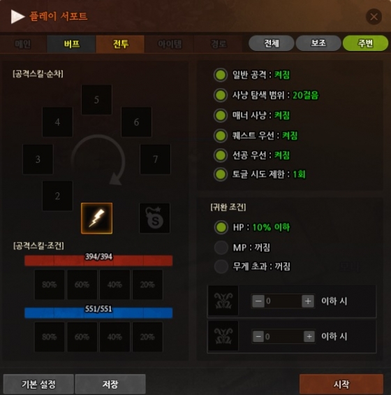 그래픽의 변화와 더불어 확 달라진 부분은 플레이 서포트 시스템(PSS)이다. 영어로 포장했지만, 서포트란 게 별거 없다. 그냥 자동사냥이다. PSS를 사용하면 미리 설정해 놓은(마치 매크로처럼) 행동을 자동으로 수행한다. 설정된 몬스터를 잡는다든가 특정 지역으로 이동하기도 한다. 때에 따라 스킬이나 물약도 간간이 사용해준다. 모바일 게임에서 흔히 보는 오토시스템에서 한 걸음 더 나간 모습이다.