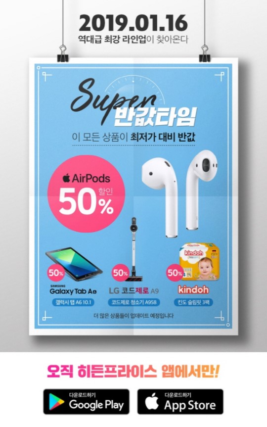 위메프 히든프라이스는 오늘(16일) 하루 동안 '슈퍼반값타임 행사'를 진행한다. 수십여 개 인기 브랜드 상품을 인터넷 최저가(네이버 가격비교 기준)보다 50% 이상 할인한 가격에 판매한다.