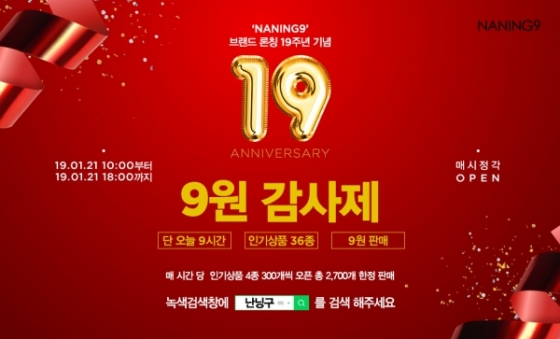 여성의류 쇼핑몰 '난닝구' 가 올해로 19주년을 맞아 이벤트 '9원 감사제'를 진행한다.