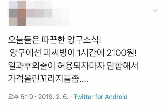 그런데 최근, 한 유저 트위터를 통해 양구 PC방이 이번 2월 군 장병 외출이 허용된 직후 가격을 올렸다는 이야기를 게재하면서 논란을 불러왔습니다. 과연 어떻게 된 일일까요? 이번에 양구 PC방 관계자와 주변 거주민으로부터 자세한 이야기를 들어봤습니다.