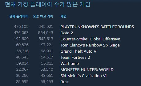 앞서 나온 두 게임에 비하면, 배틀로얄 장르 선구자 역할을 해오던 ‘배틀그라운드’는 아주 형편이 좋지는 않습니다. ‘APEX 레전드’가 나오기 전부터 동시 접속자 수가 100만 밑으로 떨어졌기 때문입니다.