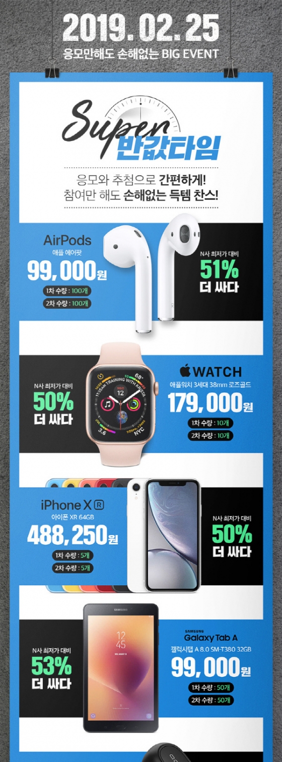 히든 프라이스 상품은 매 이벤트마다 인기를 끌었던 애플의 에어팟부터 애플워치 아이폰 XR, 갤럭시탭 등으로 구성됐다.