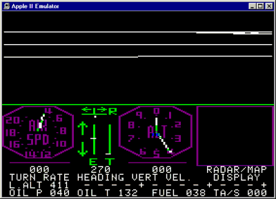 1979년은 비행 시뮬레이션에 있어서는 전설의 시작이 되는 ‘플라이트 시뮬레이터’가 애플 II 컴퓨터로 발매된 해입니다. 서브로직이란 회사에서 제작한 이 게임은 이후 마이크로소프트에 인수되어 1982년부터 2012년의 ‘마이크로소프트 플라이트 시뮬레이터’ 시리즈까지 이어진 오랜 역사를 지닌 게임이죠.