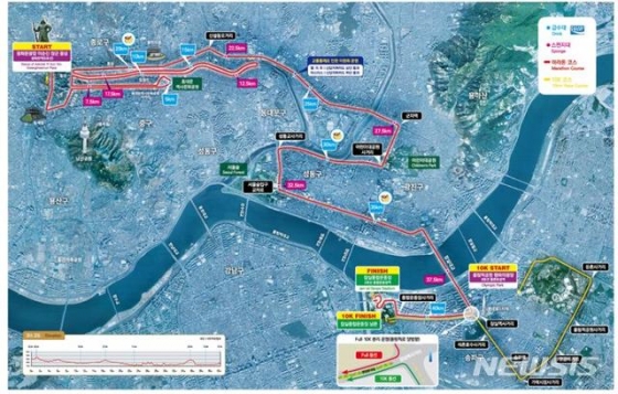 서울국제마라톤대회는 42.195㎞를 완주하는 풀코스(광화문광장~잠실주경기장)와 10㎞종목(올림픽공원평화의문~잠실종합운동장)으로 분리된다.