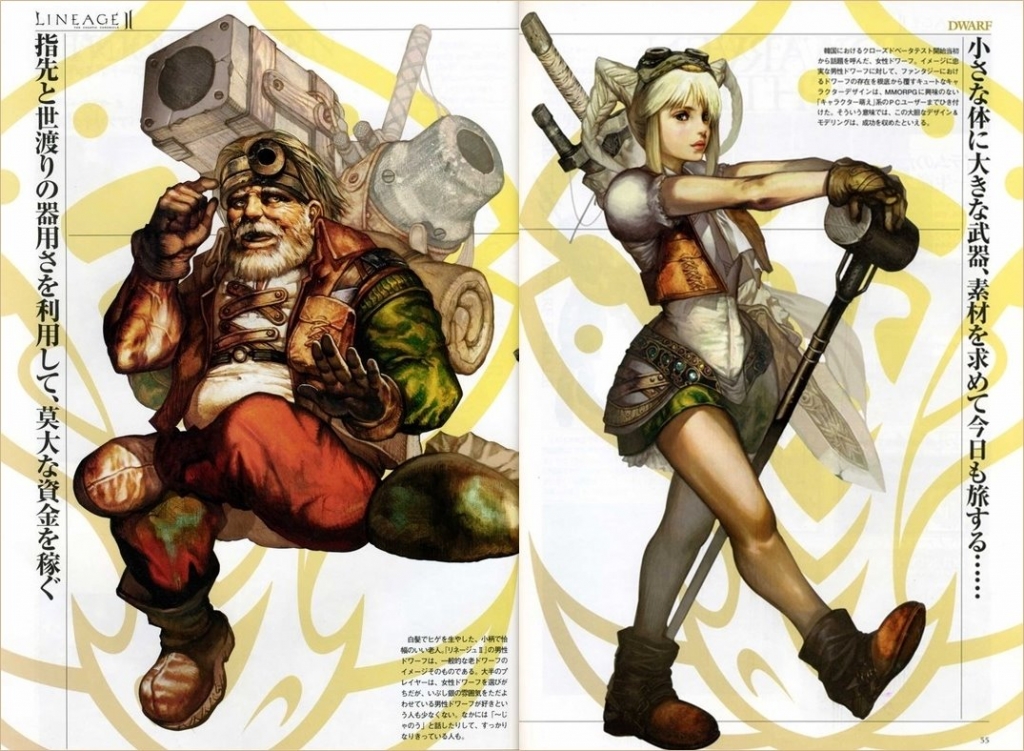 하지만 이 드워프는 다릅니다. '리니지 2'의 드워프는 '월드 오브 워크래프트'와 확연히 다른 모습을 하고 있죠. 드워프 여캐에 실망을 금치 못했던 유저들에게 선물을 해 주고 싶었던 걸까요? '리니지 2' 드워프 종족 여성 캐릭터는 작고 귀여운 존재들의 단골 헤어스타일 양갈래 머리까지 장착하고 메인 캐릭터로 활약했었죠.