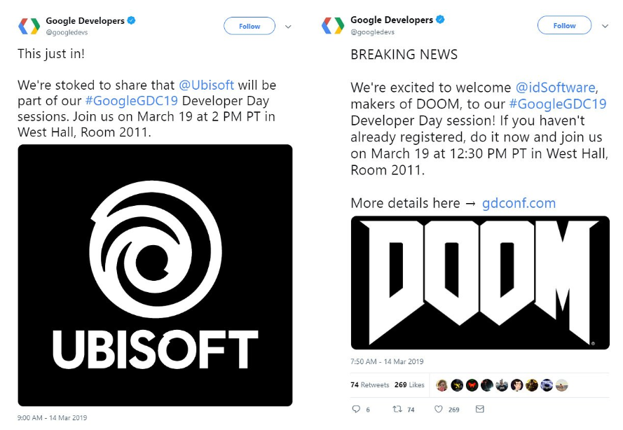 해외 매체들은 그 근거로 구글에서 관련 게임 개발자들을 다수 영입해왔다는 점, 그리고 과거 행적을 들었는데요. 실제로 구글에서는 지난 3월 12일 돌연 ‘어쌔신 크리드’를 개발한 제이드 레이몬드를 부사장에 선임하기도 했고, 이번 구글 ‘GDC 2019’ 세션에 유비소프트와 이드소프트웨어 참여 소식을 알리는 등 심상치 않은 움직임이 포착됐죠.