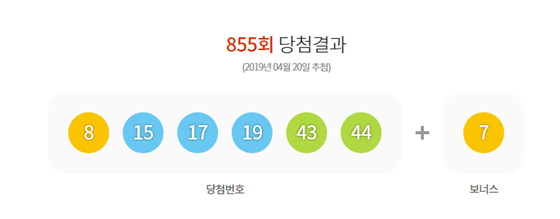지난 20일 추첨한 로또 복권의 1등 당첨 번호는 8, 15, 17, 19, 43, 44번이었다. 2등 보너스 볼은 7번으로 결정됐다.