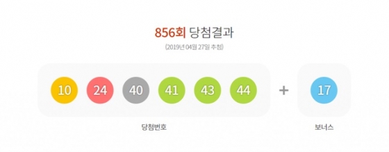 추첨결과 1등 당첨번호는 '10, 24, 40, 41, 43, 44'. 2등 보너스번호는 '17'이다. 6개 번호를 모두 맞힌 1등 당첨자는 1인당 39억7792만7550원을 받게 된다.