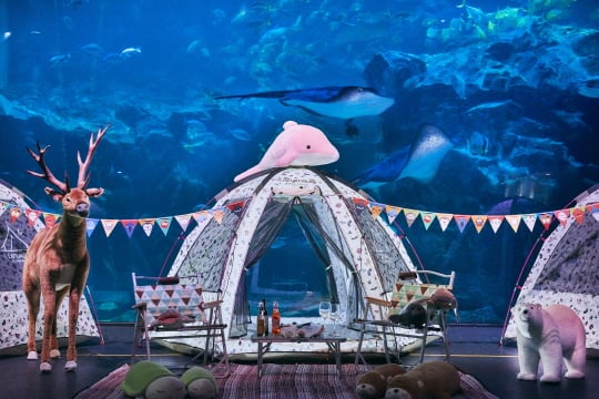 11일에는 아쿠아리움에서 1박 2일 가족끼리 오붓한 시간을 보낼 수 있는 아쿠아 캠핑을 진행한다. 모집 인원은 총 20팀이며, 팀당 최대 4명까지 참여 가능하다. 이용 금액은 2인 기준 12만원으로 인당 2만원에 현장에서 추가 비용을 내면 된다. 아쿠아 캠핑을 신청하면 아쿠아리움뿐만 아니라 브릭플라넷, 얼라이브스타 무료입장이 가능하고, 생태체험 스탬프북, 소원엽서, 그리스로마 신화 도서 등 40만원 상당의 13종 혜택을 받을 수 있다. 아쿠아플라넷 공식 홈페이지에서 선착순으로 신청 받는다.
