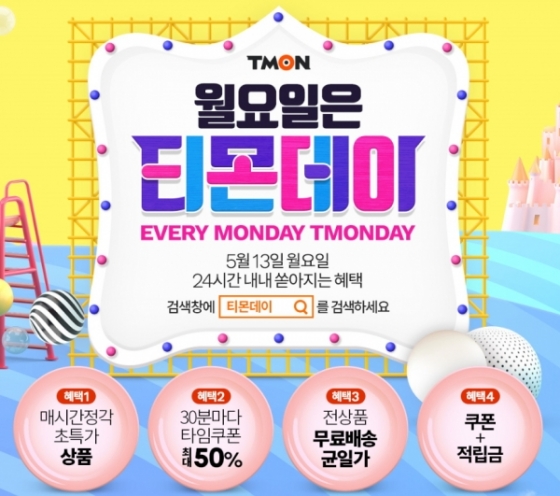 또 티몬은 티몬데이를 기념해 13일 하루 △5130원 선착순 쿠폰 △카드사전용 최대 10% 할인쿠폰 △최대 500원 적립금 이벤트도 진행한다.